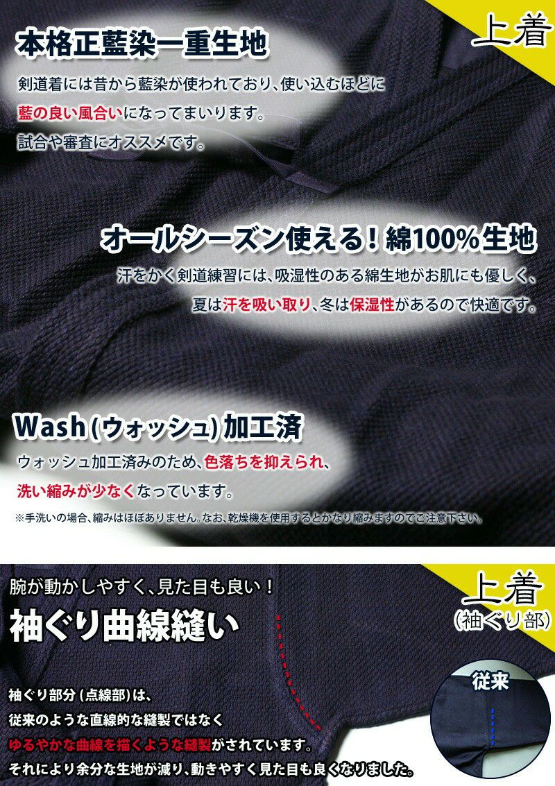 他の画像を見る 送料無料!それぞれ5文字まで刺繍も無料!サイズが心配な方は、刺繍無しならサイズ交換も可能。安心・お得な剣道着通販なら、剣道具専門店の剣道屋にお任せ下さい。 [剣道屋] 上下セット ●「紺一重剣道着+新特製テトロン剣道袴・黒」剣道着セット ★各5文字無料+ワンポイント刺繍無料 ★オリジナル面手拭プレゼント ★竹刀ワックス付 価格: ¥ 7,797 税込 詳細を見る お気に入りに登録する